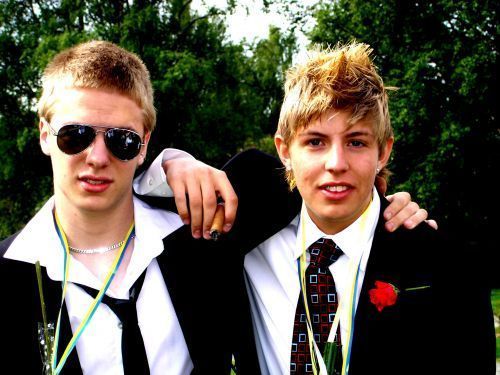 Skolavslutningen i nian. Jag hade snaggat bort kalufsen och tagit hål i örat några veckor innan kortet togs (inte i snibben utan inuti örat). Dragit på mig pilotbrillorna dagen till ära, vita smutsiga sneakers och knäppt upp några knappar. Tufft!